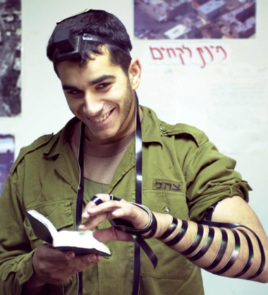 Conforme los judíos usan la <Kipa> o el <Talit>, también usan una especia de delantal en la cintura llamado <Tzitzi>, el cual tiene 613 flecos que representan los 613 preceptos que debe de observar[5] todo judío. Lo deben llevar puesto en la cintura, según las ordenanzas de Moisés (Números 15:37-41). Además deben ponerse en la frente y en el brazo izquierdo una cajita llamada <Tefilin>[6], que contiene dentro los diez mandamientos. La cajita del brazo llevará unas correas que se llaman «filacterias», y tienen que dar siete vueltas desde la palma de la mano hasta el brazo, y representa la obediencia al mandato de Deuteronomio 6:6-8. Es una forma literal de aplicar a su liturgia la Palabra de Dios. Todo esto es liturgia simbólica de lo que en realidad debe de ser la ley de Dios en nuestras vidas. Pero ¿De qué nos vale hacer todos estos ritos, si no obedecemos en la práctica las enseñanzas dadas? ¿Nos salva llevar la ley en el brazo o en la frente, o más bien debemos escribirlas en el corazón? Pablo nos dice en 2 Corintios 3:2-4: «Nuestras cartas sois vosotros, escritas en nuestros corazones, conocidas y leídas de todos los hombres; Siendo manifiesto que sois carta de Cristo extendida por nosotros, escrita no con tinta, mas con el Espíritu del Dios vivo; no en tablas de piedra, sino en tablas de carne del corazón. Y tal confianza tenemos por Cristo para con Dios».