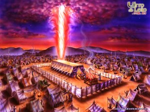 El culto hebreo ha sufrido cambios a través de la historia. Primeramente la vida religiosa y litúrgica giraba alrededor del tabernáculo. Esta era una tienda movible improvisada a lo largo del peregrinar del pueblo en sus 40 años por el desierto. Los elementos de esta etapa giraban en torno a un sacerdocio, encargado a la tribu de Leví. A un tabernáculo, dividido en tres partes, el atrio o zona del sacrificio, lugar hasta donde el pueblo podía llegar, el lugar santo o de adoración, y el lugar santísimo en donde el sumo sacerdote podía acceder una vez al año para hacer expiación por los pecados de todo el pueblo. El sacrificio podía ser de expiación, de paz o de gratitud. Y al acampar, el pueblo se ubicaba alrededor del tabernáculo, por orden de tribus, siendo éste el centro de su vida y existencia en el desierto[2]. A través de un cordero, macho cabrío o un palomo se obtenía la sangre, con la cual sé hacia expiación en el lugar santo, derramando la misma frente al velo del lugar santísimo. Una réplica del culto sacerdotal del tabernáculo lo tenemos representado en el rito de la misa católica, que sigue la idea del sacrificio sacerdotal de Levítico con adaptación al cristianismo.