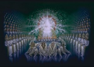 - Isaías 6:1-3 En el año que murió el rey Usías vi yo al Señor sentado sobre un trono alto y sublime, y sus faldas llenaban el templo. Por encima de él había serafines; cada uno tenía seis alas; con dos cubrían sus rostros, con dos cubrían sus pies, y con dos volaban. Y el uno al otro daba voces, diciendo: Santo, santo, santo, Jehová de los ejércitos; toda la tierra está llena de su gloria