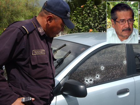 (TEGUCIGALPA.-<Tomado del diario la tribuna 8 de dicmembre 2011) Después de haber señalado durante varios años la corrupción policial y la infiltración de grupos del narcotráfico, y llevar la voz cantante a favor de la depuración al interior de las filas uniformadas, Alfredo Landaverde (71) fue acribillado ayer a balazos, por dos sujetos que iban a bordo de una motocicleta, en la intersección de la colonia 21 de octubre con la San Miguel, al noreste de la capital hondureña.)
