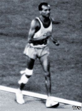 John Stephen Akhwari, nacido en 1942 en Mbulu, Manyara, Tanzania, apareció en la oscuridad. Entró al estadio olímpico con muestras de dolor en cada uno de sus pasos, su pierna mal vendada con unos pañuelos sangraba. Cruzó el túnel andando. No podía más. Le quedaban 400 metros. Los 400 metros finales del maratón, la carrera por excelencia, la carrera que pone a prueba el valor, determinación y capacidad de sufrimiento de los atletas. La respuesta del público que seguía en el estadio fue sobrecogedora. Estaban presenciando uno de los mayores ejemplos de valor y superación que se recuerdan. Para sorpresa de todos, Akhwari, en cuanto pisó el tartán de la pista, se puso a correr. Lento, arrastrando su pierna derecha, con claros síntomas de dolor, agotamiento y sufrimiento, el atleta tanzano recorrió, jaleado por todos y cada uno de los presentes, los 400 metros finales del maratón de los J.J.O.O. de México. Y llegó. John Stephen Akhwari cruzó la línea de meta, completó los 42,195 km. y cumplió su sueño. En cuanto cruzó la línea, cayó en brazos del personal médico que inmediatamente lo trasladó al hospital.