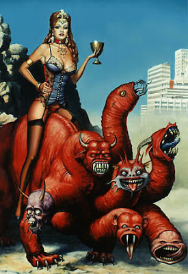 Apocalipsis 17  plantea una escena extremadamente perturbadora. Un ángel de los juicios de las copas se acerca al apóstol Juan y le dice, “Ven acá, y te mostraré…la Gran Ramera”. Por su apariencia física, la Gran Ramera es descrita teniendo estampado en su frente un tatuaje que dice: “Misterio, Babilonia la Grande, la Madre de las Rameras y de las Abominaciones de la Tierra”. La mujer está vestida de púrpura y escarlata y resplandece con oro, piedras preciosas y perlas. Sostiene un cáliz de oro en su mano, lleno de abominaciones y de la inmundicia de sus adulterios.
