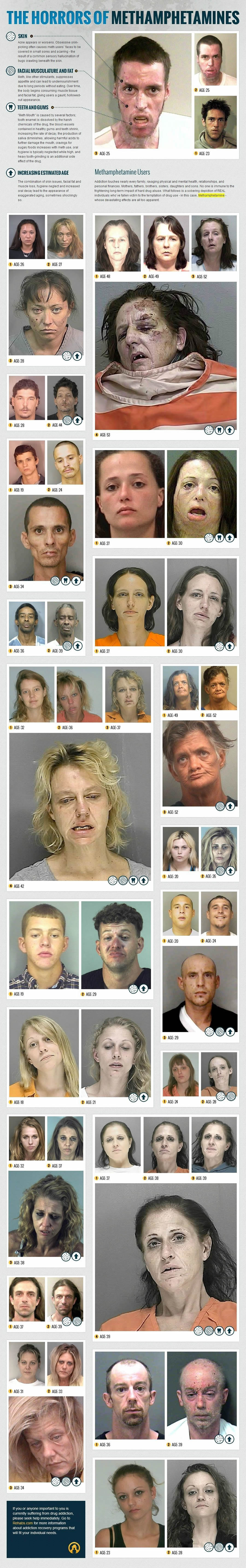La adicción a la metanfetamina toca de cerca a todas las familias del adicto, haciendo estragos en la salud física y mental, en las relaciones y la confianza personal. Madres, padres, hermanos, hermanas, hijas e hijos. Nadie es inmune al temible impacto a largo plazo del consumo de drogas pesadas. La siguiente infografía es una descripción sobria de personas reales que han sido víctimas de la tentación del consumo de drogas – en este caso, la metanfetamina – cuyos efectos devastadores son demasiado evidentes.