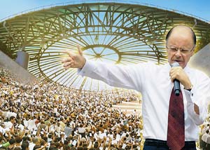 Durante un culto reciente en Sao Paulo, el ministro les mostró a los fieles un video del templo. «Los nombres de los fieles serán inscritos en las 640 columnas del templo», dice el ministro antes de entregarles sobres a los religiosos para donaciones. «El obispo me dijo que un hombre donó 200.000 reais (US$116.000). Si no puede donar esa cantidad, entonces done 1.000 o 500. Done de acuerdo con su fe», resalta el ministro.