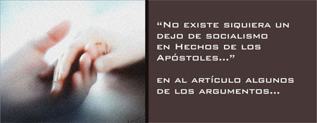 No existe siquiera un dejo de socialismo en Hechos de los Apóstoles. Aquí las razones de por qué esto es así. En primer lugar, si hubiera socialismo en Hechos, no hubiera existido la propiedad privada en ese entonces, ya que el corazón del socialismo es la posesión gubernamental de toda propiedad. ¿Dónde, en Hechos de los Apóstoles, habrá participado el gobierno, sin ser en sus intentos de suprimir la predicación del evangelio? Allí no habla de oficiales de gobierno que se hubieran preocupado por la primera iglesia, sino de apóstoles. Como el Dios del Antiguo Testamento es el mismo Dios que el del Nuevo Testamento, tiene que haber una continuidad entre “ambos” para cualquier tipo de tema. Wayne Grudem observa en su libro Politics According to the Bible (Política de acuerdo a la Biblia): “Con regularidad, la Biblia presupone un sistema y lo enfatiza, en el cual la propiedad es individual, no del gobierno ni de la sociedad como un todo.” Grudem, además, sostiene que los mandamientos ocho y diez, y la ley entera dada a través de Moisés, presuponen los derechos de propiedad individuales. Porque, ¿cómo se podría robar o codiciar la posesión de su prójimo, si no existiera la propiedad privada? ¿Y cómo habrían podido vender su posesión personal en Hechos, para dar el dinero a los apóstoles, si se supone que no existía la propiedad privada? Si no hubiera existido la posesión privada, todo le hubiera pertenecido al gobierno, y nadie hubiera tenido una propiedad para poder venderla. Y si los apóstoles, en alguna manera, hubieran sido los líderes de una sociedad comunal, ellos hubieran tenido el control sobre las posesiones de cada individuo, y no las personas mismas que vendieron sus propiedades.