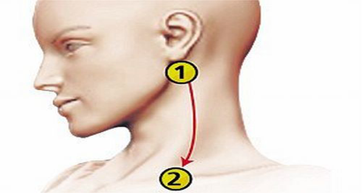 Esto no es ni siquiera un punto, sino una línea. Se pasa por detrás del lóbulo de la oreja a la mitad de la clavícula. Esta línea no tiene que ser presionada o masajeada, necesita mimar muy lentamente con movimiento casi imperceptible de la mano de arriba a abajo, apenas tocando con la punta de los dedos. Repetir 10 veces en un lado y luego 10 veces en el otro lado.