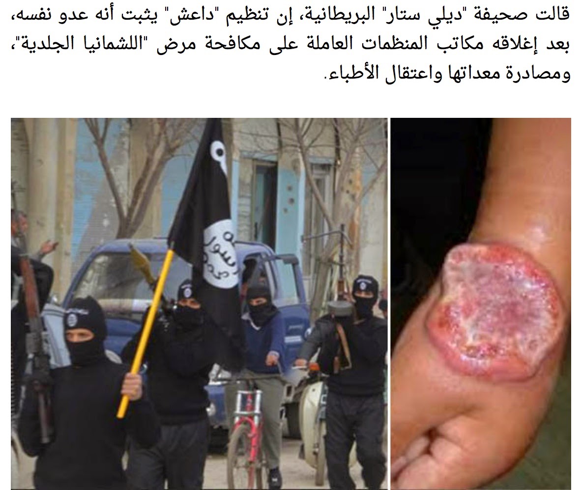 EVENTOS FINALES»  Fuente: http://shoebat.com/ – El Estado Islámico se enfrenta a un nuevo enemigo, está siendo arrasada por una enfermedad que come la carne, según los informes. La rápida propagación de la Leishmaniasis, que provoca la aparición de úlceras dolorosas, fiebre y pérdida de peso, se debe a las pésimas condiciones higiénicas de los territorios del «califato».