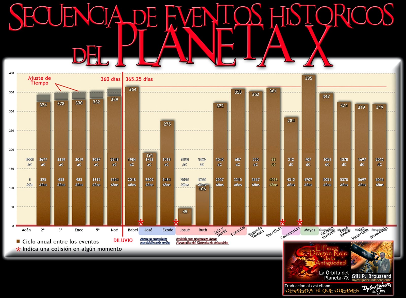 El siguiente gráfico muestra las fechas en las que el Planeta X cruzó la órbita terrestre. En próximos posts iré explicando los acontecimientos de cada una de esas fechas, que son fácilmente verificables por cualquier persona, aún sin mayores conocimientos de astronomía.