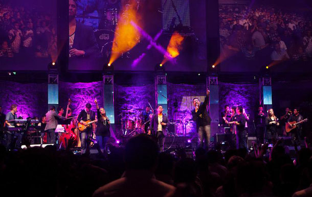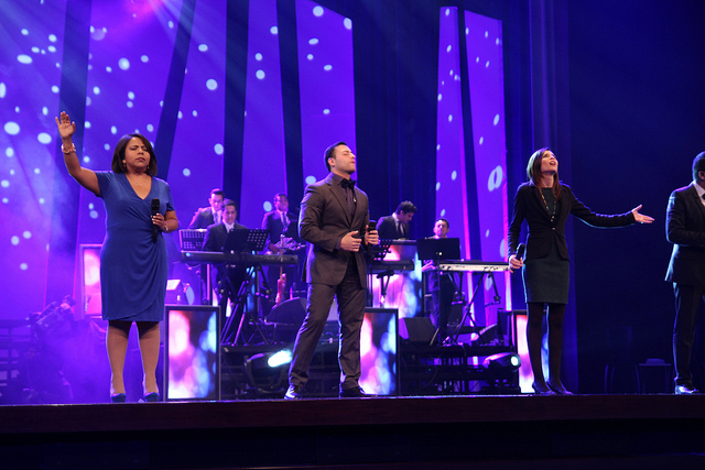 Pero entremos en detalles. Lo primero que me llama la atención en este tipo de adoración moderna muchas veces el volumen de los equipos de sonido, de las guitarras y las baterías ahogan la voz del pueblo en la expresión del cántico, que es en sí lo que podemos llamar alabanza. La magnitud del audio en muchas iglesias sobrepasan los limites saludable aceptados, alcanzando más de 100 decibelios[1]. También se estila que todos tienen que actual según lo indica el que preside. Todo está bien organizado y programado, a tal punto, que no hay oportunidad dentro de la congregación para ningún tipo de espontaneidad, de oración o de cánticos espirituales, y si no hubieran instrumentos, o se fueran al luz, no podrían cantar a capela . Esto rompe el sentido del término de adoración.