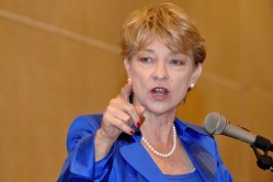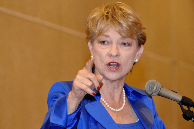 Carol Everett speaks at an April 28 luncheon sponsored by Lifewatch. Everett is the founder of Heidi Group, a non-profit pregnancy center in Dallas. .