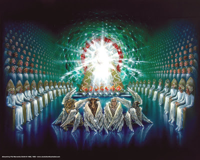 Hay dos grupos misteriosos de ángeles que ocupan la sala del trono de Dios. Son llamados serafines y querubines. Los serafines son representados sólo una vez en las Escrituras, en Isaías 6:1-3. En este pasaje se le da a Isaías un vistazo de la sala del trono de Dios en el Cielo. Él mira criaturas angelicales llamadas serafines flotando sobre el trono de Dios. Son descritos teniendo seis alas cada uno. Parecen ser líderes de adoración ya que ellos exclaman, “Santo, santo, santo, es el Señor de los ejércitos, toda la tierra está llena de Su gloria”.