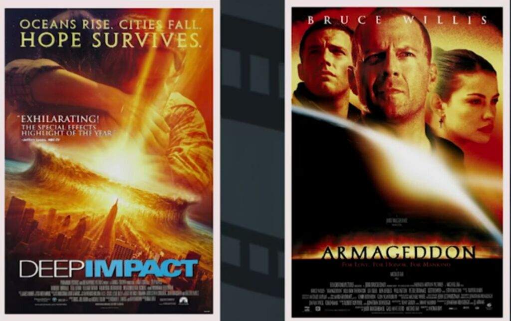 Hollywood ha elaborar varias películas relacionada con fenómenos astronómicos relacionado con la posible caída de un meteorito en la tierra, entre ellas la más populares han sido «IMPACTO PROFUNDO»  y «ARMAGEDON» ambas estrenadas en el 1998. Las mismas tratan de la lucha de la ciencia para evitar una catástrofe que destruyan el planeta. Ambas  presentan la supuesta hipótesis de un gran meteorito que vienen  a impactar la tierra, y se lucha para evitar su impacto.