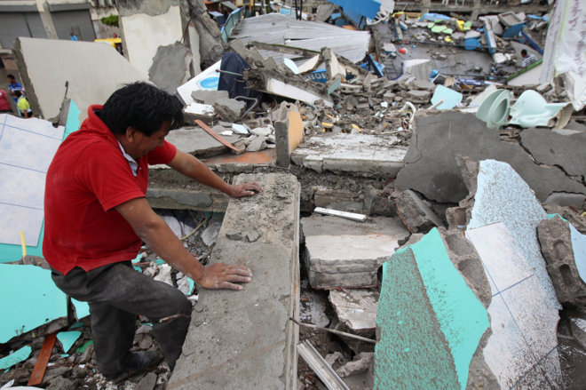 Durante toda la noche y hasta el día siguiente, Samuel continuó cavando. Los padres colocaron flores y fotos de sus hijos en las ruinas. Pero, Samuel seguía trabajando. Cogió una viga y la apartó cuando escuchó un débil grito. «¡Ayuda ayuda!» Samuel escuchó pero no escuchó nada de nuevo. Entonces oyó una voz apagada, «¿Papá?»