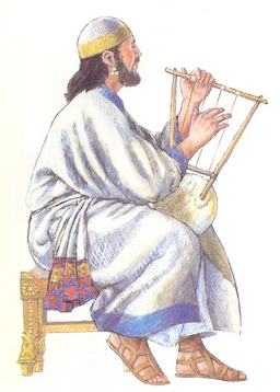 3º- Como  una expresión de adoración. Samuel profetizaba usando la música (1 Samuel 10:5), de la misma forma lo hizo  Eliseo (2 Reyes 3:15),  pero uno de los que más uso la música como arte y expresión de adoración fue el Rey David. Éste tocaba el arpa mientras cuidaba el rebaño de su padre. David compuso muchos Salmos que originalmente fueron canciones. * Con ella aquietaba los espíritus que atormentaban al Rey Saúl (1 Samuel 16:14-23). En el culto en el Tabernáculo David puso cuatro mil músicos, una orquesta gigantesca, (1 Crónicas 23:5)  para honrar a Dios. Aun los Levitas entraban con instrumentos al santuario (2 Crónicas 29:26) Y los levitas estaban con los instrumentos de David, y los sacerdotes con trompetas”[4].