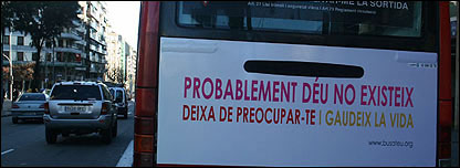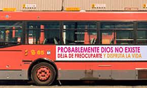 «Probablemente Dios no existe así que deja de preocuparte y disfruta tu vida», eso se podía leer en los autobuses. El Reino Unido ya había mostrado estar a la vanguardia de estos movimientos cuando el año pasado los tradicionales autobuses de Londres empezaron a circular con clic un llamativo afiche. «Probablemente Dios no existe así que deja de preocuparte y disfruta tu vida», podía leerse. La campaña atea fue organizada por The British Humanist Foundation (Fundación Humanista Británica) y apoyada por Dawkins.
