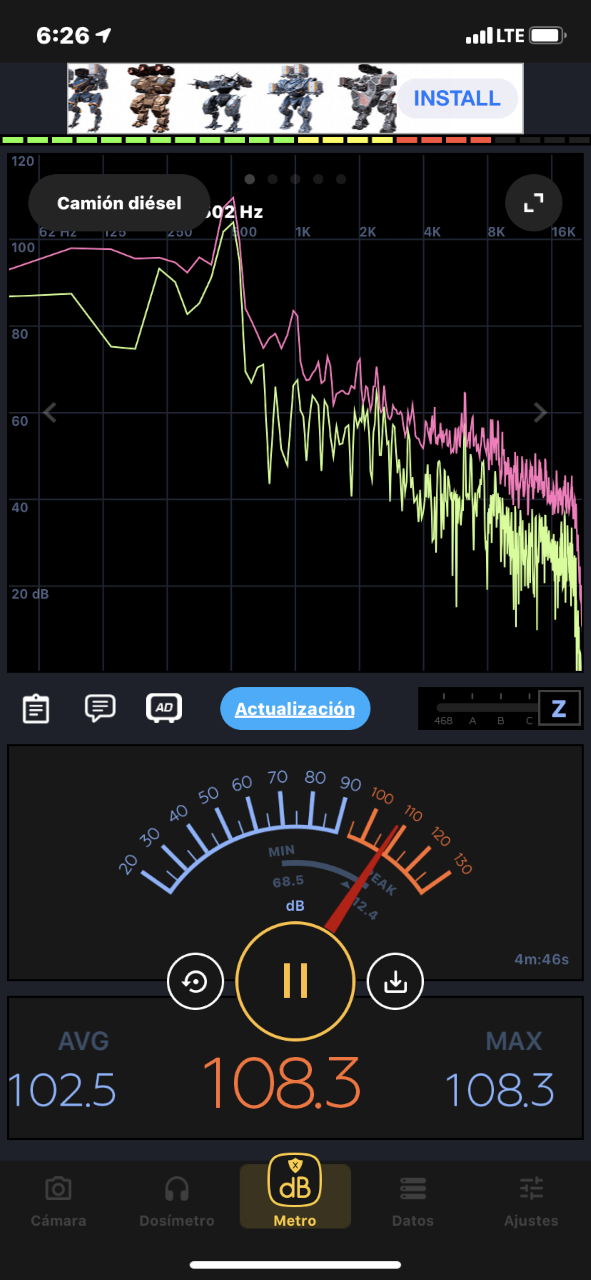 Recientemente visite una iglesia donde fui a compartir la Palabra de Dios, y me sentado en una la silla del medio del auditorio. Comenzó el devocional, y aunque los cánticos era lindo, la potencia de los equipos de sonido era tan ensordecedores, que sentí malestar en mi cabeza, y entonces tome una aplicación que tenía en mi celular, (un app llamado Decibel X) para medir los decibelios de potencia que habían en el local, y cuando la misma se activó, llegó a marcar un rango tan alto, que sobrepasaba los límites normales para el oído humano. Era semejante al zumbido de un motor de avión jet  al despegar, sobrepasando los 105 dB de potencia mínima.