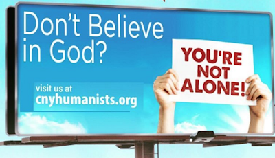 (Una valla publicitaria patrocinada por los Humanistas de Nueva York Central. Dice: «¿No crees en Dios? ¡No estás solo!» (unitedcor.org).)