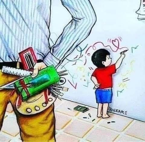 Al observar esto, su padre decidió no regañarlo, al contrario, decidió explicarle desde el amor que amaba sus dibujos y le dijo que le regalaría un cuaderno especial para dibujar en donde el podría dibujar todo lo que quisiera.
