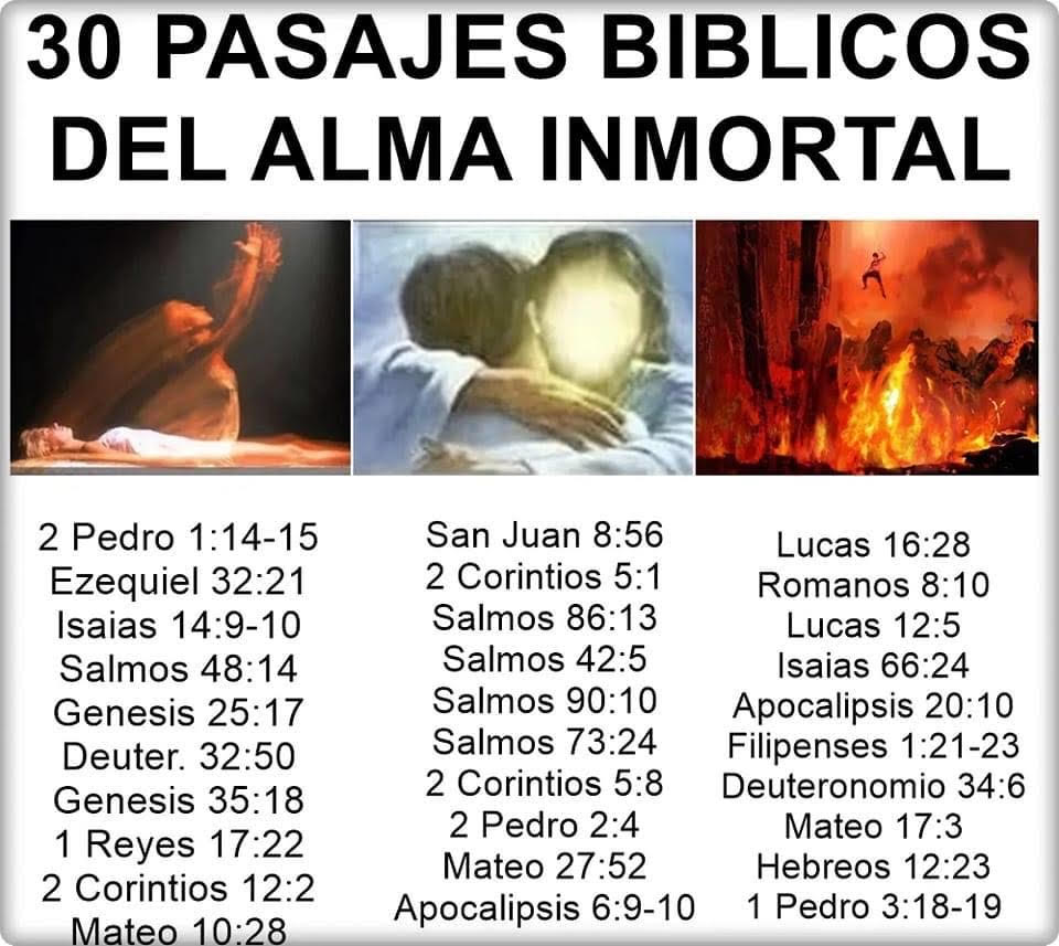Veamos 30 pasajes bíblicos donde el alma de los que fallecen sale del cuerpo, sigue viva, pensando, hablando, recordando, en tormentos, sintiendo. Etc.