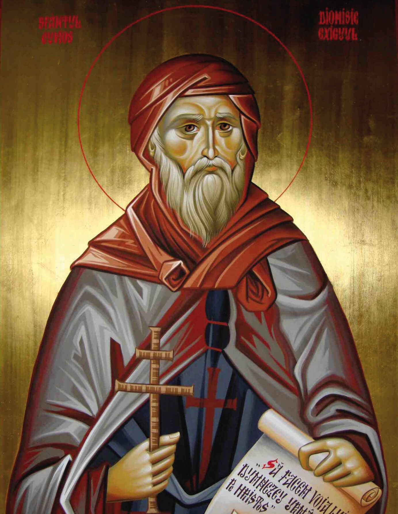 Dionisio el Exiguo fue el responsable del cálculo de la fecha de nacimiento de Jesús por encargo del papa Juan I. Casiodoro, que era amigo personal y discípulo de Dionisio y escribió sobre él en sus Institutiones divinarum et saecularium litterarum, no menciona los trabajos que este realizó pocos años antes en relación con el calendario cristiano, aunque la obra lo señala como un gran erudito, como demostró a través de la traducción de varias obras griegas al latín o sus contribuciones a la ley canónica y la recopilación de decretos sinodales y constituciones papales. Icono rumano contemporáneo.