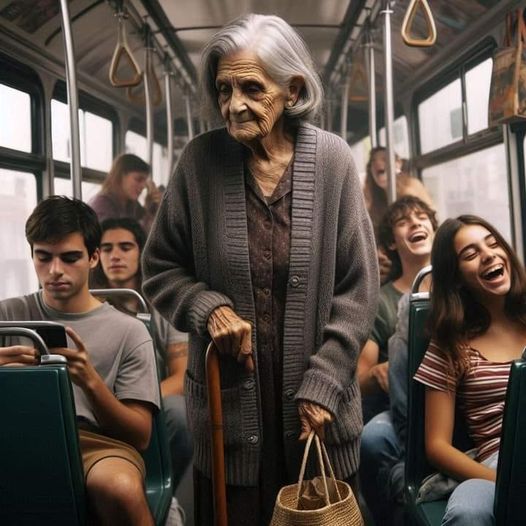 María, una anciana de 78 años, se subió al autobús como lo hacía todos los días. Caminaba despacio, con su bastón en una mano y una pequeña bolsa de compras en la otra. Sus ojos cansados escudriñaban los asientos buscando un lugar donde sentarse, pero el autobús estaba casi lleno. Apenas había espacio para moverse entre las risas y conversaciones de los jóvenes que viajaban con sus teléfonos y auriculares puestos, ajenos al mundo exterior.