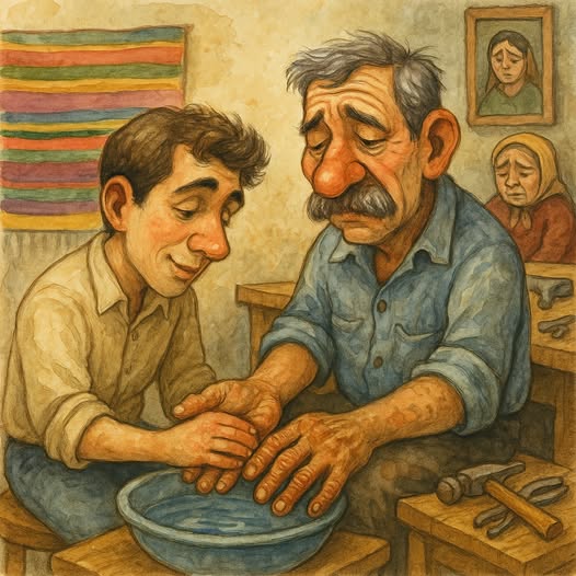 Después de lavarle las manos a su padre, el joven no pudo detenerse el dolor de una indiferencia. Limpió todo el taller, organizó las herramientas, y esa noche hablaron durante horas. El hijo lo miraba distinto: con respeto, con gratitud, con amor.