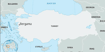 Pérgamo (que es la actual Bergama, Turquía) fue una ciudad de inmensa importancia cultural y política. Como capital de la provincia romana de Asia, era un centro de arte, medicina y religión. Dominando la ciudad había una magnífica acrópolis adornada con templos a Zeus, Atenea, Dionisio y Asclepio, el dios griego de la curación. El templo a Asclepio, también conocido como el “Dios de la Medicina”, atraía a peregrinos de todo el imperio, esperando sanación a través de rituales, interpretación de sueños y encuentros místicos. El caduceo, que es un símbolo de un bastón con dos serpientes enroscadas alrededor de él, proviene de Pérgamo y sigue siendo la insignia oficial del Cuerpo Médico de los Estados Unidos, la División de Farmacia de la Armada y el Servicio de Salud Pública.