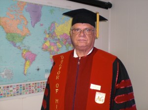 Como maestro de la Escuela de Misiones y escritor de más de 60 libros, con 40 años en el ministerio como misionero, el Instituto Teológico del Distrito Hispano del Este de las Asambleas de Dios le otorga el “doctorado en ministerio” el 8 de julio del 2009.