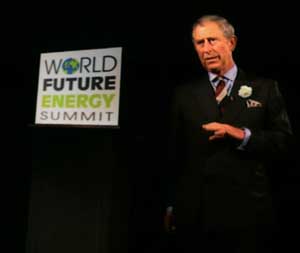 A holographic projection of Britain’s Prince Charles giving an address is presented at the opening ceremony of the World Future Energy Summit in Abu Dhabi, United Arab Emirates, Monday, Jan. 21, 2008. (AP Photo/Kamran Jebreili)