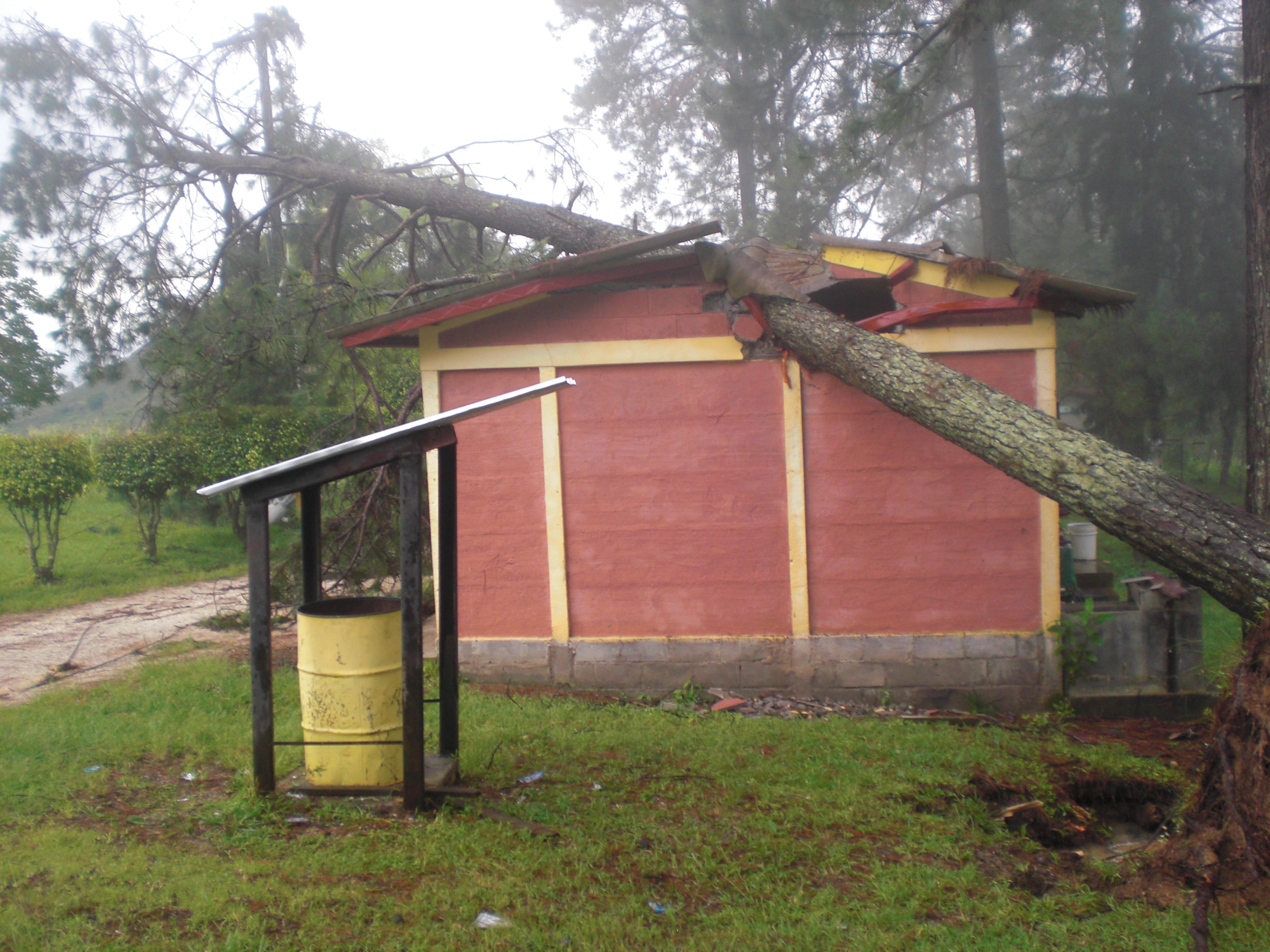 El 1 de septiembre DEL 2010 a las 2.30 una fuerte lluvia con vientos huracanados azoto las instalaciones del Proyecto Victoria en Zepate, Cofradía ocasionando el derrumbe de muchos pinos los cuales dos de ellos calleron sobre una casa de menores, hiriendo a uno, y el otro  sobre la clínica de desintoxicación, además de tumbar todo el sistema eléctrico de alta tensión y el transformador . El acceso a la zona residencial quedo bloqueado, incomunicado por los inmensos árboles, y para evitar más riesgos , trasladamos uma zona mas segura a los menores alejado de los pinos, los cuales por la saturación de agua están en riesgo de venirse abajo. Hemos hecho un llamado a las autoridades de Electricidad y de emergencia, para que nos ayuden a enfrentar esta emergencia y ver como trasladamos el herido a Tegucigalpa . Esperamos su apoyo para reparar estas construcciones. Los daños en infraestructuras rondan los Lps 11,000 dólares.