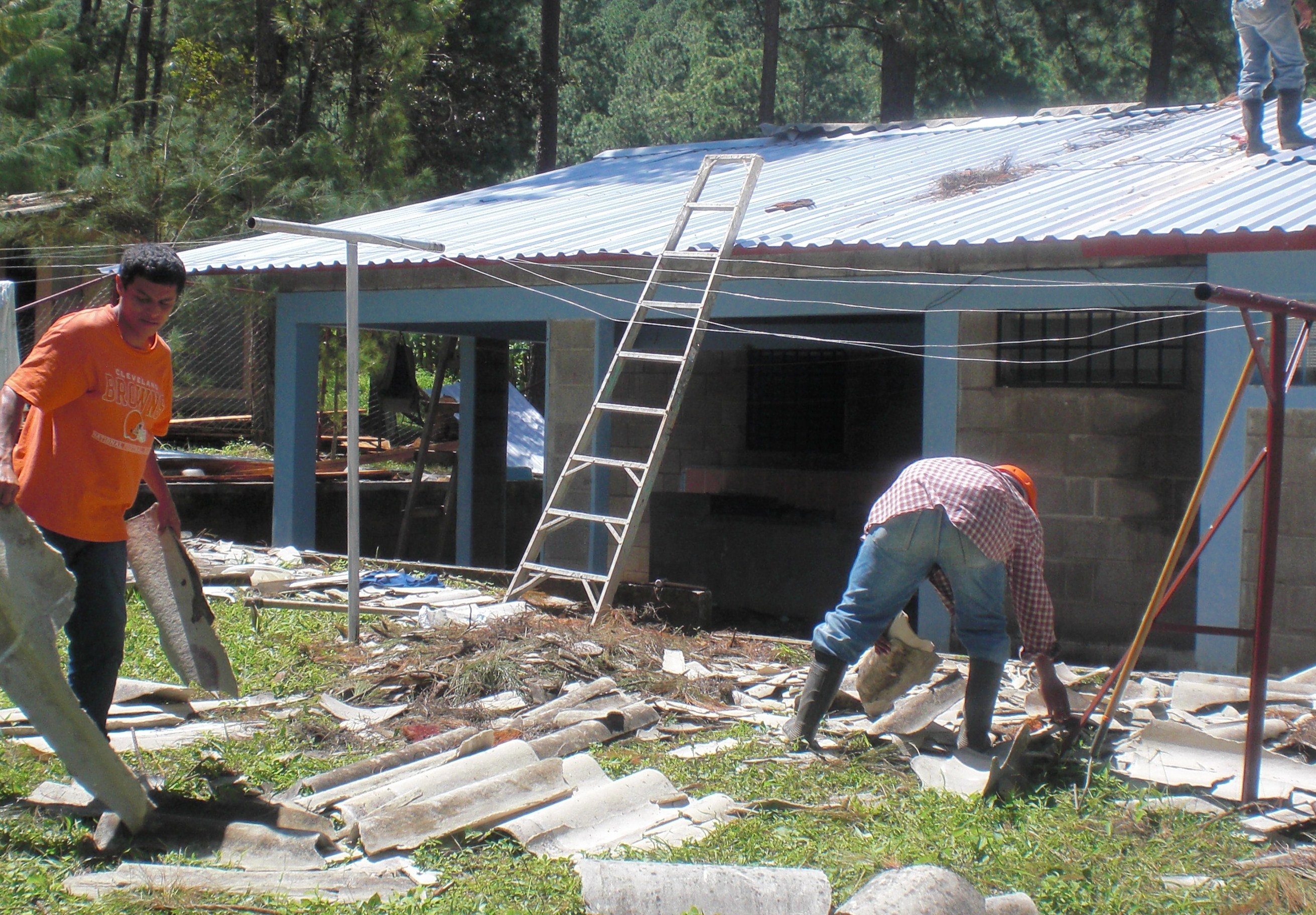 En esta foto puede ver las reparaciones efectuadas en la clínica de desintoxicación, la  cual sufrió serios daños en su techo, lo que nos obligo a cambiarlo todo. Queda pendiente reparar el cerco y reponer algunos muebles dañados.